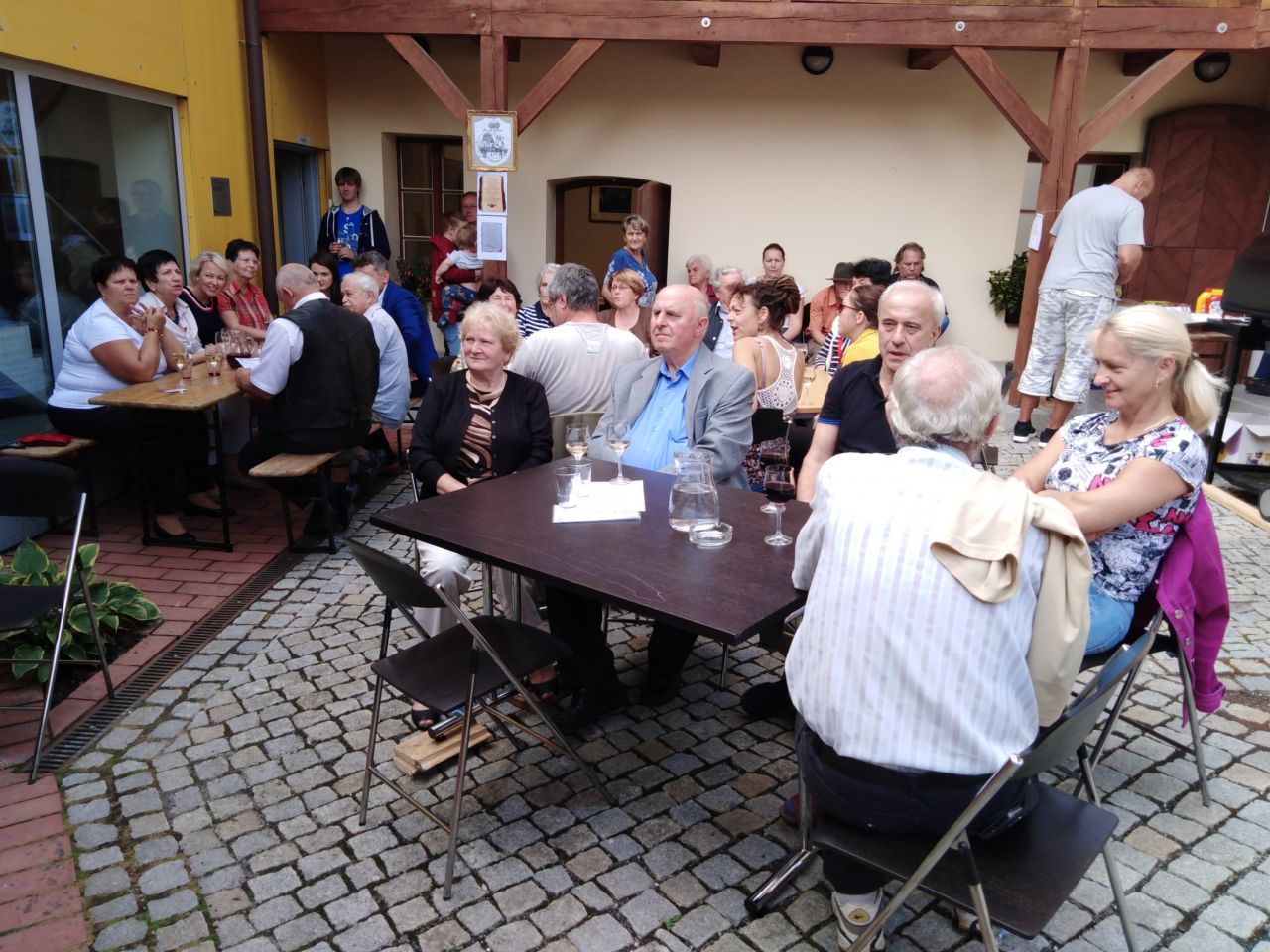 V sobotu proběhlo na nádvoří Spolkového domu první vinobraní s cimbálovou muzikou TRNKA, lahodným vínkem, veselou a pohodovou atmosférou.