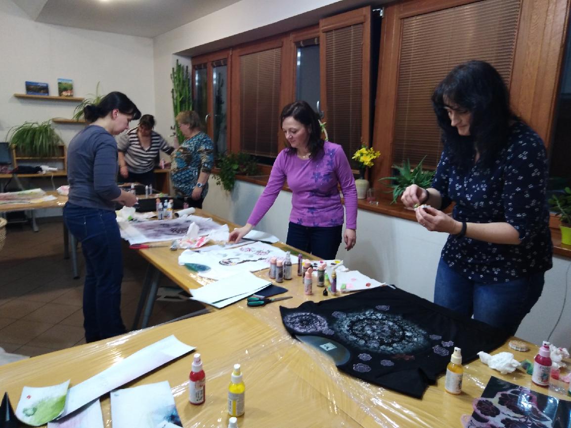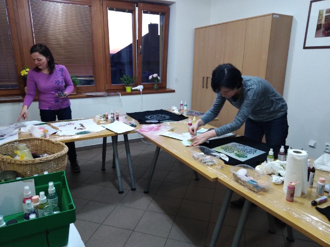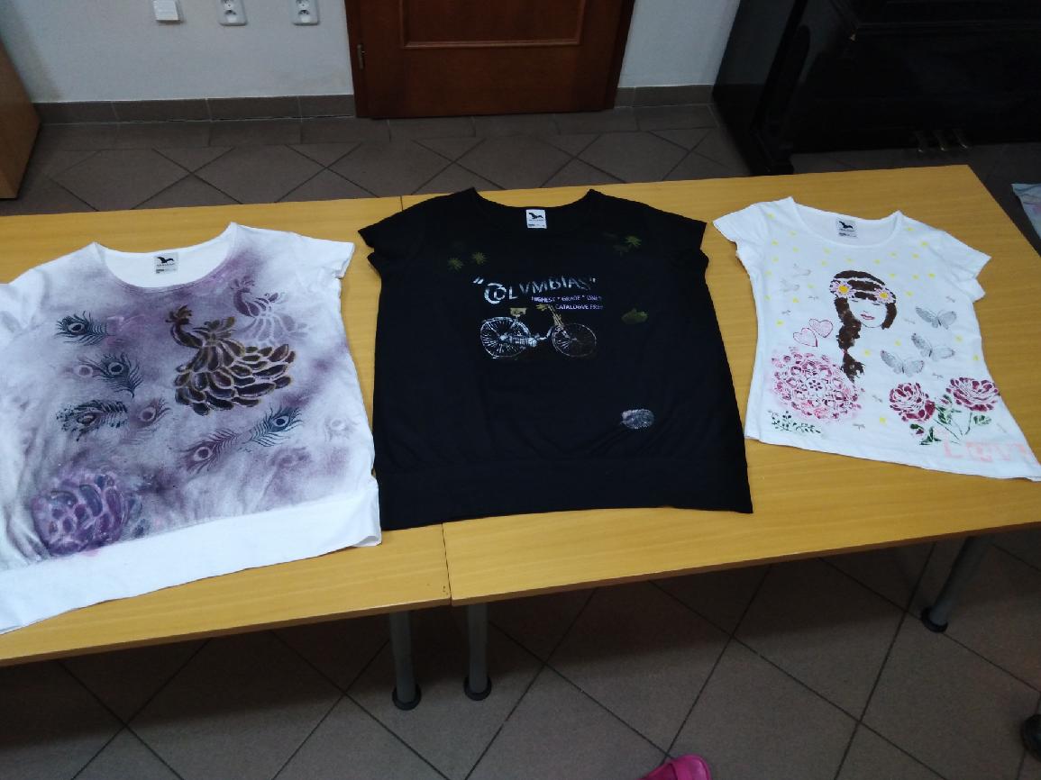 Po dlouhé pauze opět proběhlo textilní tvoření s paní Alenou Staňkovou. Šikovné tvůrkyně si vytvořily originální trika, podle své intuice a fantazie, vznikla kouzelná díla!